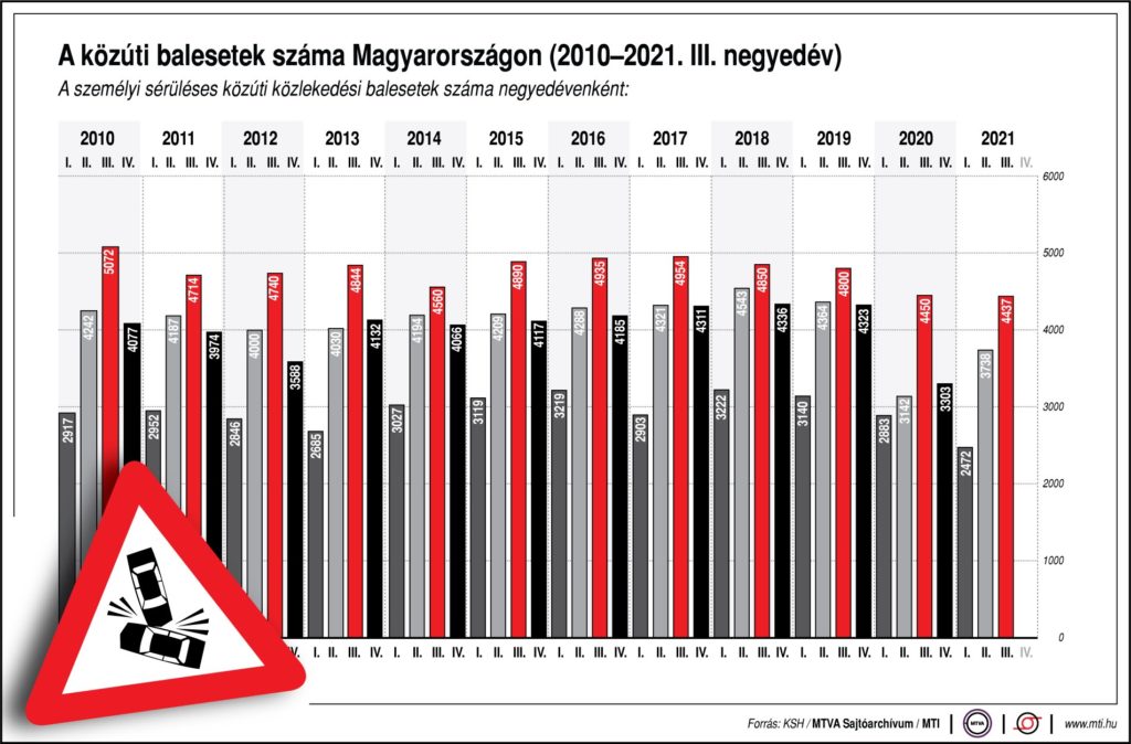 KezdőlapEgy képA közúti balesetek száma Magyarországon (2010-2021. III. negyedév) Egy kép A közúti balesetek száma Magyarországon (2010-2021. III. negyedév) Szerző: Balogh Elise 2022. február 15. 0 160 FacebookLinkedinEmailWhatsAppTwitterViberCopy URL A személyi sérüléses közúti közlekedési balesetek száma Magyarországon. MTI ForrásMTI CímkékbalesetMagyarország Megosztás FacebookLinkedinEmailWhatsAppTwitterViberCopy URL Előző cikkKözúti közlekedési balesetekben meghaltak száma Magyarországon (2001-2020)Következő cikkTeherszállító járművek okozta személyi sérüléses balesetek Magyarországon, 2001-2020 Balogh Elise Kapcsolódó cikkek Vizen Továbbra is szárnyal a magyar tengeri konténerforgalom Logisztikai ingatlanok Az utolsó kilométer Magyarországon is egyre nagyobb kihívást jelent Szakmai szervezet Kelet-Európa a logisztika új motorja: növekvő intermodális forgalom és kikötői együttműködések a térségben HOZZÁSZÓLOK A CIKKHEZ Mégsem szólok hozzá Hozzászólás: Kérjük, írja be véleményét! Név:* írd be a neved E-mail:* Helytelen e-mail címet adtál meg! írd be e-mail címét Honlap: Maradjunk kapcsolatban829RajongókTetszik96KövetőKövetés - HIRDETÉS - Legfrisebb hírek Vizen Továbbra is szárnyal a magyar tengeri konténerforgalom Logisztikai ingatlanok Az utolsó kilométer Magyarországon is egyre nagyobb kihívást jelent Szakmai szervezet Kelet-Európa a logisztika új motorja: növekvő intermodális forgalom és kikötői együttműködések a térségben Áruszállítás A cargo-partner új GDP-tanúsítványokkal erősíti gyógyszerlogisztikai hálózatát fenntarthatóság Fenntartható csomagolás a logisztikában Továbbiak