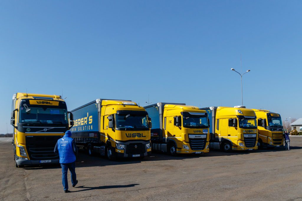 A magyar kormány segélyszállítmányát szállító kamionok egy helyi vámudvaron a kárpátaljai Csap határában 2022. március 18-án. Ezen a napon megérkezett Kárpátaljára a magyar kormány újabb, öt kamionnyi humanitárius segélyszállítmánya. Az adományt az Ökumenikus Segélyszervezet juttatta el Ukrajnába.