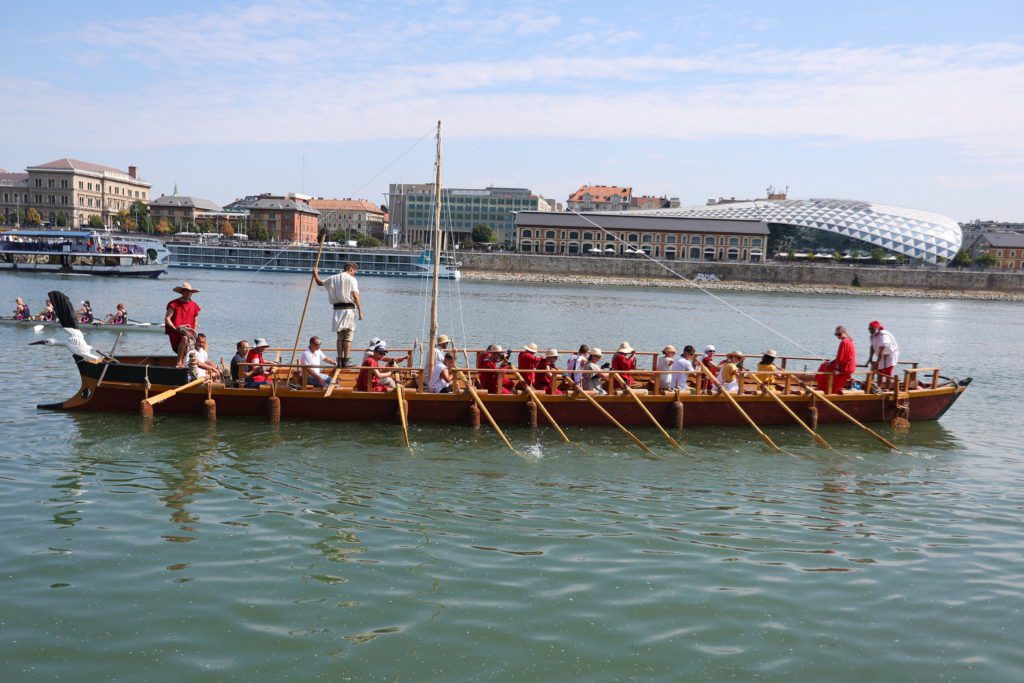 Római kori hajó a Budapesti Műszaki és Gazdaságtudományi Egyetem (BME) előtti Duna-szakaszon 2022. augusztus 15-én. A hajó július 16-án rajtolt Németországból, 24 fős legénységével végighalad a Dunán a Fekete-erdőtől Románia keleti határáig, összekötve a Duna menti római örökséggel is rendelkező településeket.