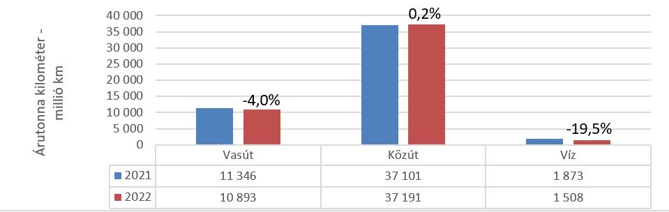 2. ábra. Magyar összáruforgalmi teljesítmény árutonna-kilométerre vetítve 2022-ben (Forrás: KSH és MLSZKSZ)