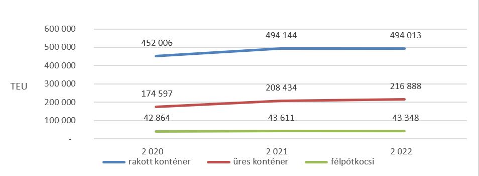Egyedülállóan a szállítási módok között, az intermodális forgalom a 2021-es növekedés után tovább bővült, tavaly több mint 750 ezer húszlábas szabványkontérnyi (TEU) árut szállítottak, elsősorban vasút és közút kombinálásával.
