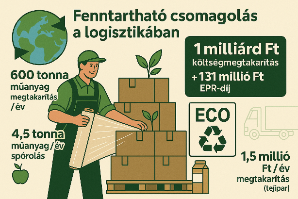 Az MLSZKSZ logisztikai piac csomagolási szokásairól készített felmérése szerint a hazai logisztikai szektorban egyre több vállalat tesz konkrét lépéseket a csomagolási műanyagfelhasználás mérséklésére. Az élelmiszeripartól az italgyártáson és a gyógyszeriparon át a raktározásig már több mint 1200 magyarországi cég alkalmaz korszerű megoldásokat, például EcoFoil fóliát, amely évente több mint 600 tonnával csökkenti az ipari műanyaghulladék mennyiségét. Ez nem csupán jelentős környezetvédelmi eredmény, hanem mintegy 1 milliárd forintos éves költségmegtakarítást is jelent a felhasználóknak, amelyet további 131 millió forint EPR-díj csökkenés egészít ki.